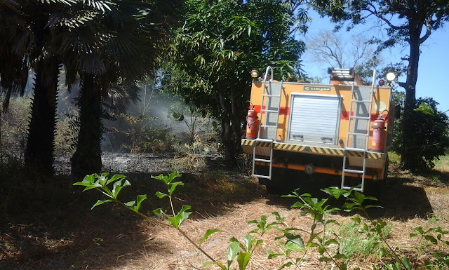 O caminhão de combate a incêndio do Aeroporto Internacional Pref. Dr. Joao Silva foi imediatamente deslocado para combater o incêndio. Populares acreditam em incêndio criminoso, mas somente o Copro de Bombeiros poderá dizer a causa.