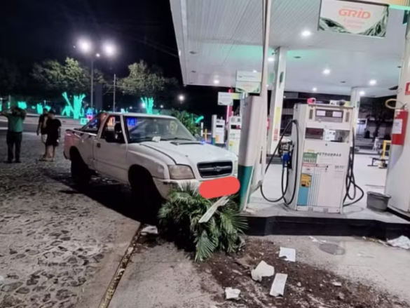 Caminhonete invade contramão e atinge posto após motorista perder controle