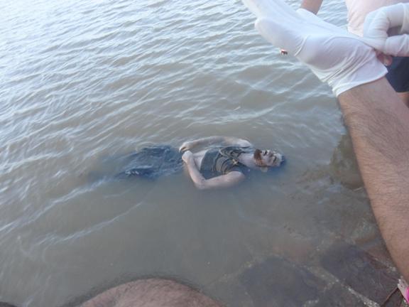 Uma parte do pé direito do corpo estava carcomido, naturalmente por espécies que vivem na água. As primeiras informações é que o corpo foi visto por populares que estavam pescando no local a base de tarrafa e anzol e a partir daí o Corpo de Bombeiros foi chamado para remover o cadáver.