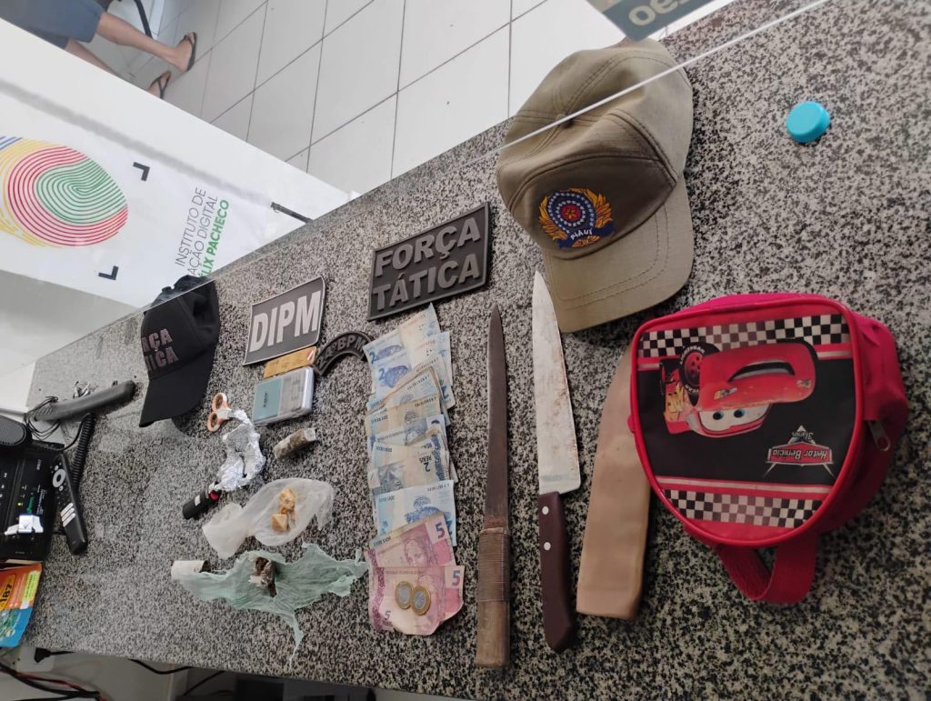 Uma ação policial em Cajueiro da Praia por volta das 10h de sábado (22/11) resultou na apreensão de drogas e na prisão de um suspeito. Durante rondas na região da Lagoa da Garça, equipes avistaram um homem que tentou se desfazer de uma bolsa vermelha ao notar a chegada das viaturas. Dentro do material recolhido havia porções de maconha e crack, uma balança de precisão, dinheiro trocado e duas facas.