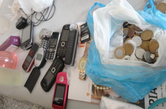 Os militares encontraram 54 pedras de crack, além de um pedaço sólido da droga, 08 celulares, 02 relógios, jóias, perfumes e R$ 100 reais em dinheiro, divididos em moedas e cédulas, que a policia acredita ser o dinheiro apurado com a venda do crack.