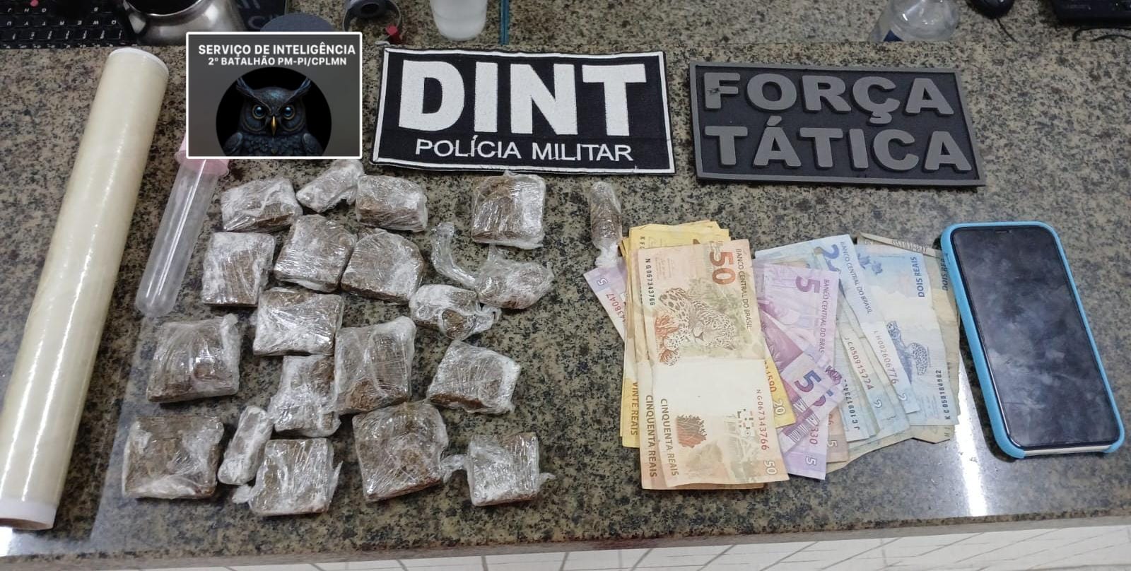 No interior da casa, os policiais apreenderam R$ 370 em dinheiro trocado, 20 porções de substância semelhante à maconha, um celular iPhone branco e um rolo de papel alumínio, material comumente utilizado para embalar drogas. No momento da ação, estavam na residência a mãe do suspeito, a companheira dele e um adolescente de 13 anos. Todo o material foi encaminhado à Central de Flagrantes de Parnaíba para os procedimentos cabíveis, enquanto a PM segue intensificando o combate ao tráfico na região litorânea.