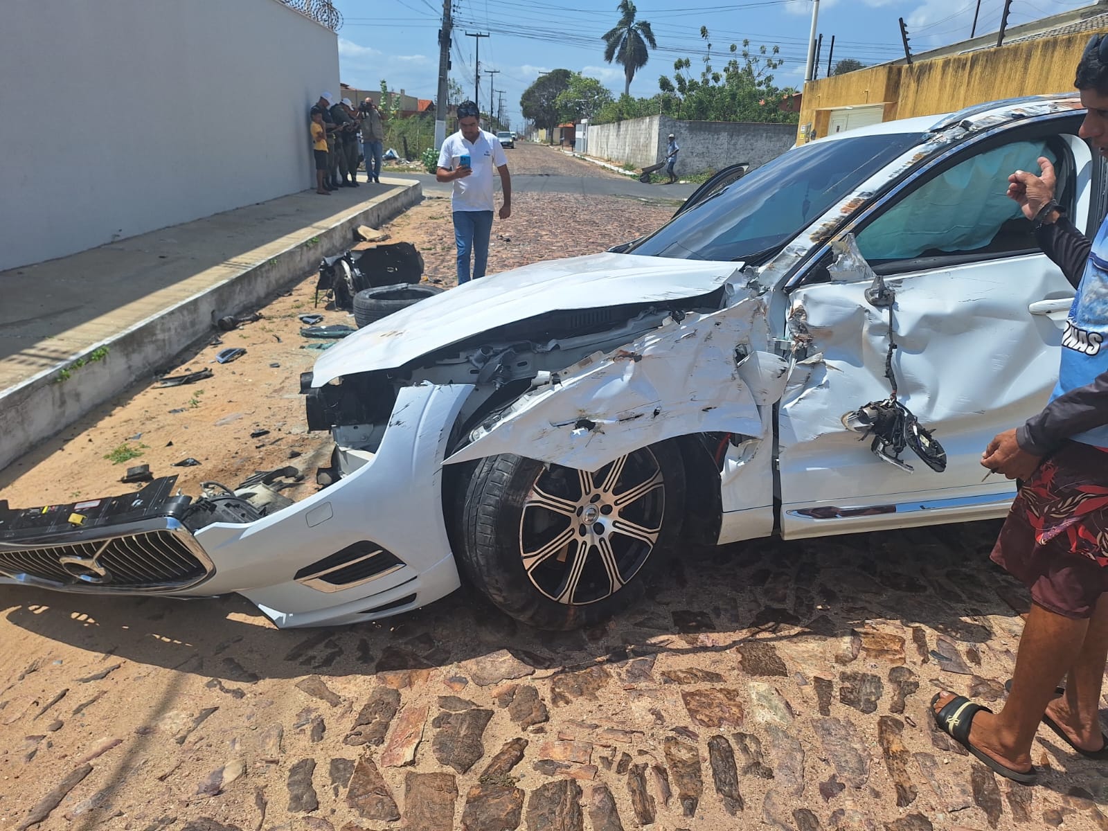 Um carro de luxo se envolveu em um acidente na manhã desta terça-feira (13), na rua Nossa Senhora das Dores, no bairro Dirceu Arcoverde. O veículo trafegava pela via quando o motorista perdeu o controle da direção, provocando um capotamento que chamou a atenção de moradores da região.